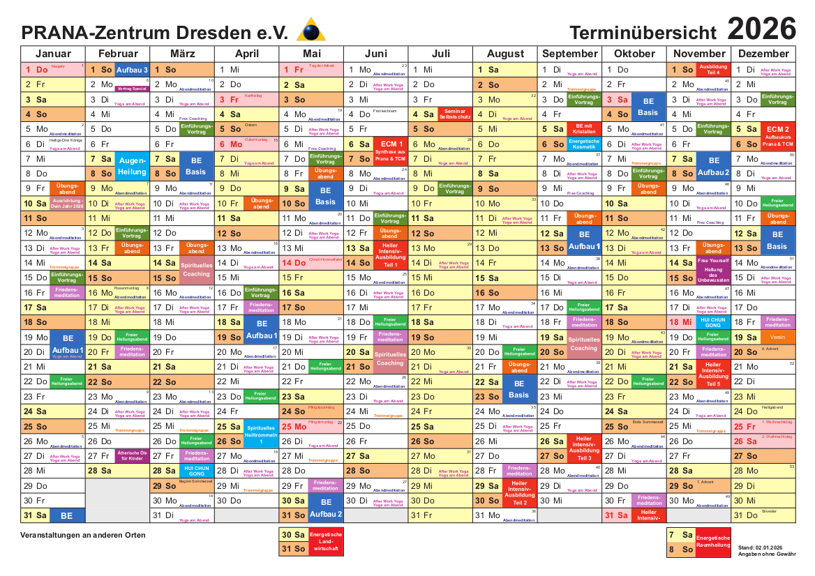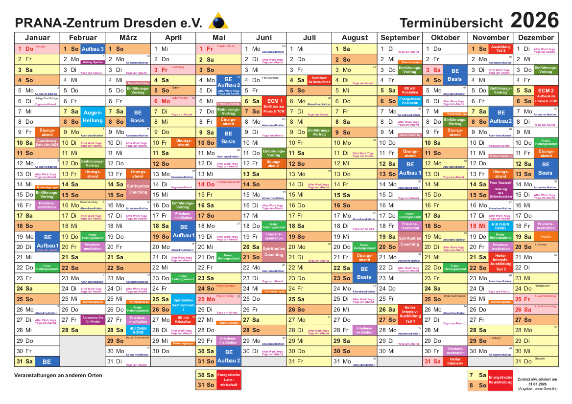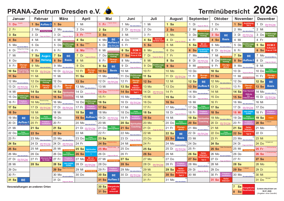 Jahres-Terminübersicht PRANA-Zentrum Dresden